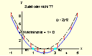Graphisch wird die x-Achse von der Kurve nicht mehr geschnitten, sondern nur mehr BERÜHRT. Wie groß ist nun die Diskriminante ??