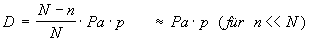 Nebenstehend sind einige Durchschlupfkurven für die Anweisung n-c = 315-7 dargestellt. Man erkennt, daß für große N die Kurve gegen die Grenzfunktion D » Pa× p wandert. Ferner ist ersichtlich, daß