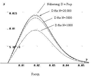 pAOQL Jener Fehleranteil, für den der Durchschlupf D maximal wird.